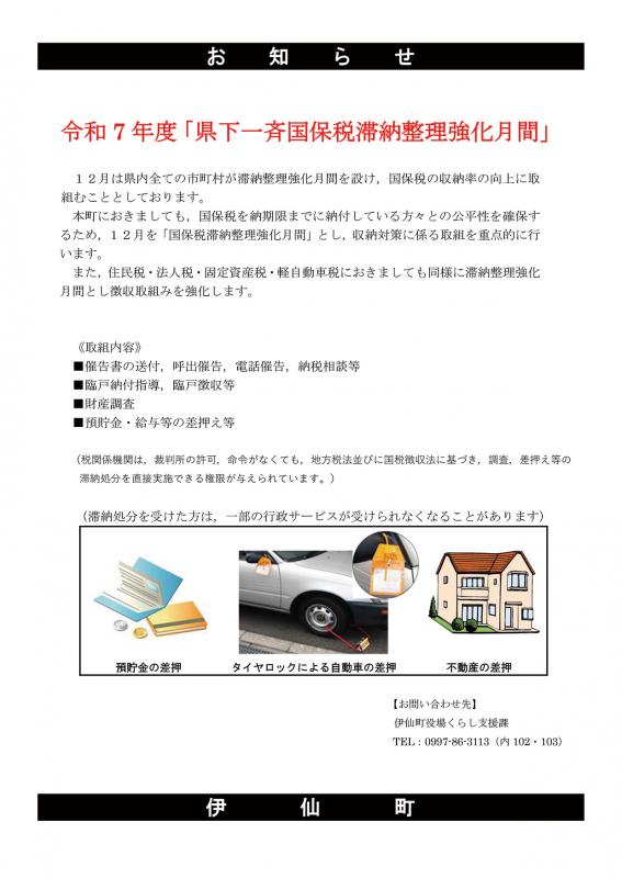 徳之島 伊仙町役場公式サイト|行政・暮らし・イベント・観光情報 > 令和7年度「県下一斉国保税滞納整理強化月間」について