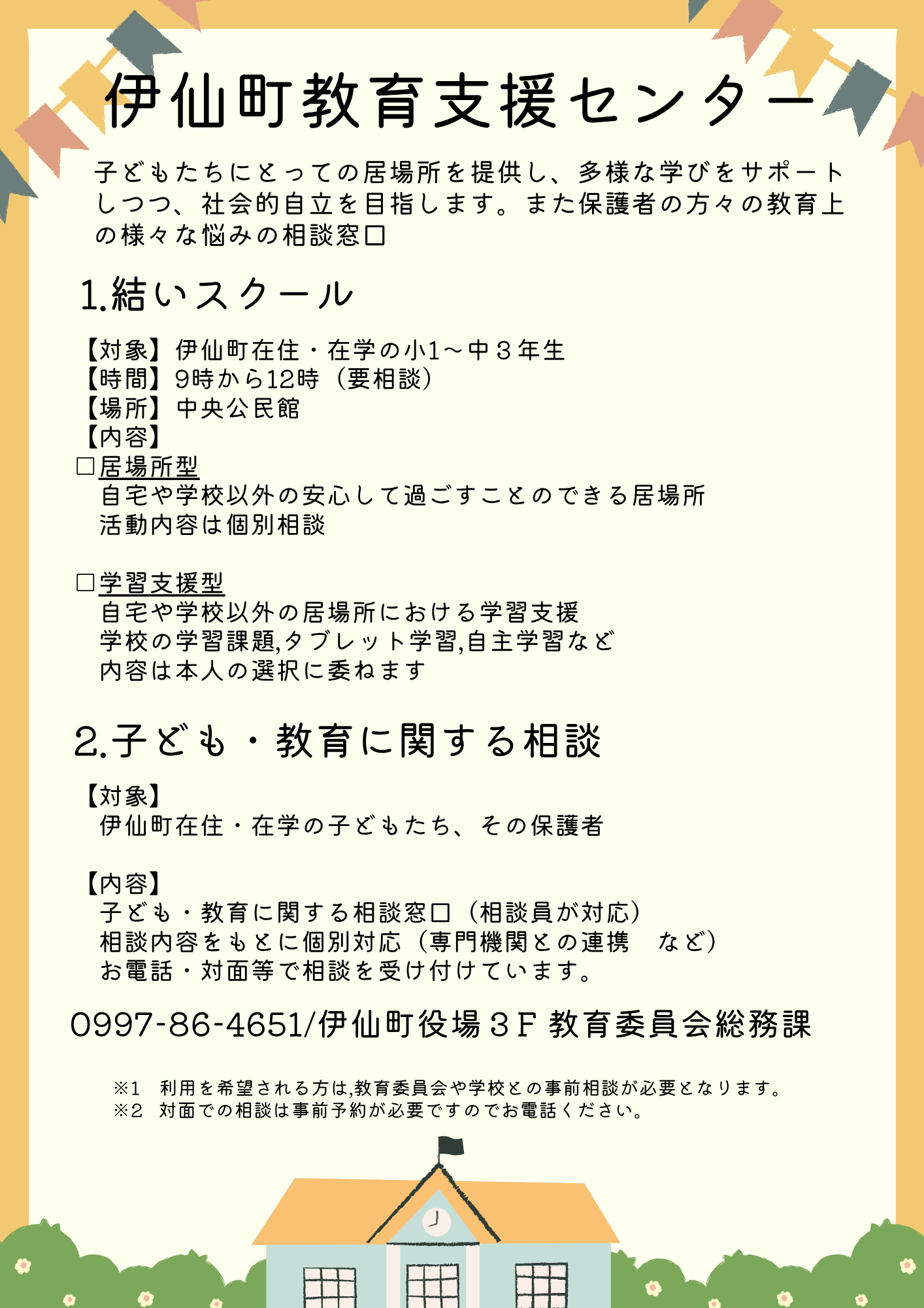 徳之島・伊仙町役場公式サイト|行政・暮らし・イベント・観光情報 > 子育て・教育 > 教育 > 教育委員会 > 伊仙町教育支援センター